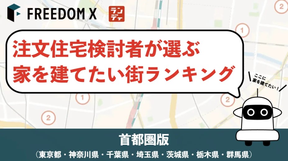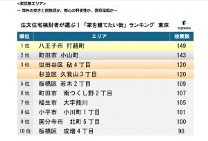 土地探しアプリ「ランディ」に掲載された土地物件のうち、首都圏エリア(東京都、神奈川県、埼玉県、千葉県、茨城県、栃木県、群馬県)を対象に、お気に入り登録数を集計した「家を建てたい街ランキング」を発表がでました