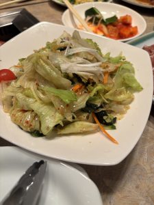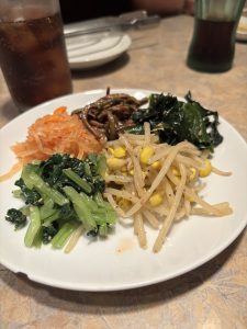 サラダはボリューム満点でした。ナムルは5種類も入っていておいしかったです。サラダの奥に(笑)キムチもあります。