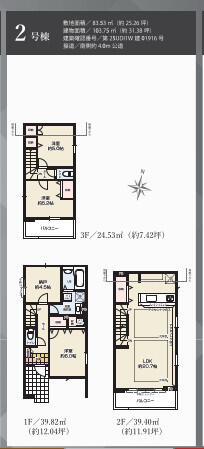 建築延床面積 | 103.75m² | 土地面積 | 85.53m² |