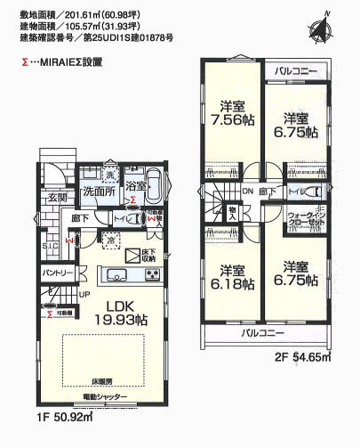 建築延床面積 | 105.57m² | 土地面積 | 201.61m² |