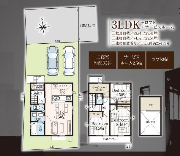 | 建築延床面積 | 74.52m² | 土地面積 | 93.94m² |