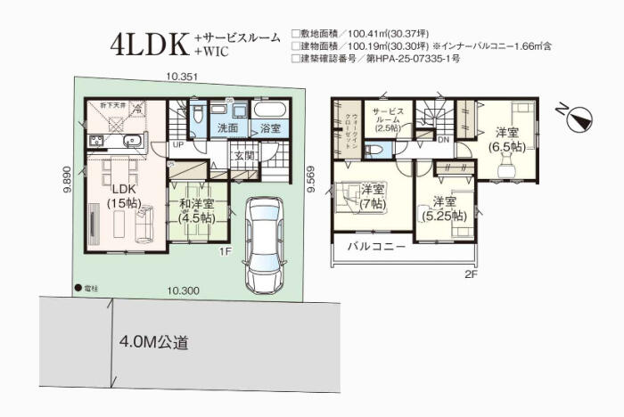 | 建築延床面積 | 100.19m² | 土地面積 | 100.41m² |