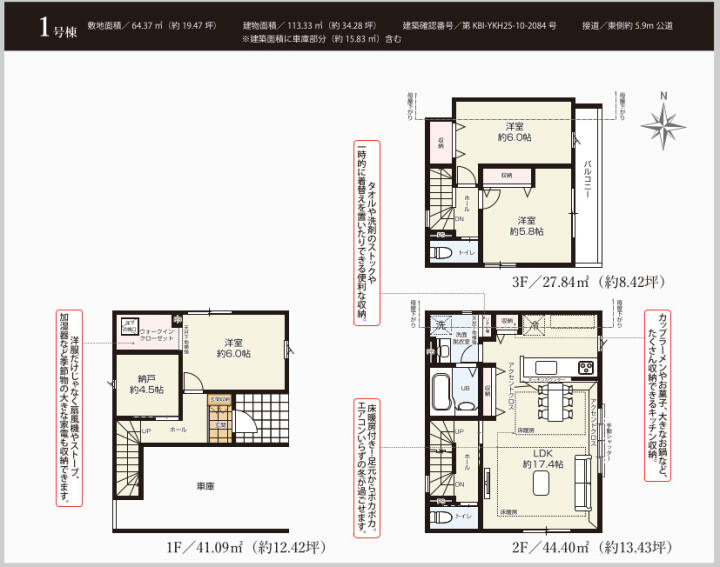 建築延床面積 | 113.33m² | 土地面積 | 64.37m² |
