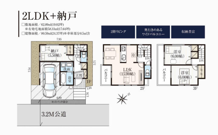 建築延床面積 | 80.59m² | 土地面積 | 62.89m² |