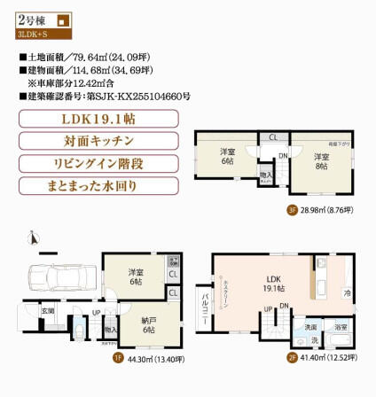 | 建築延床面積 | 114.68m² | 土地面積 | 79.64m² |