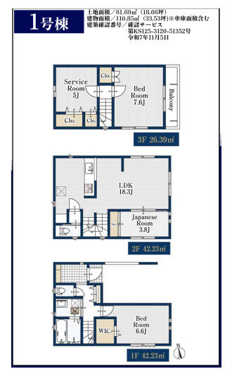 | 建築延床面積 | 110.85m² | 土地面積 | 61.69m² |