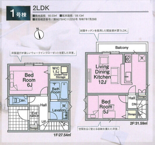 | 建築延床面積 | 59.13m² | 土地面積 | 60.03m² |