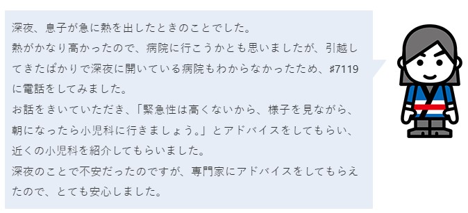 どこかが痛くなったりして、このまま車を運転して自分で病院で向かった方がいいのか車を止めて救急車を呼んだ方がいいのか迷ってしまう時や、お子様が体調が悪くてどうしたらいいかわからない時などに相談できるようです。